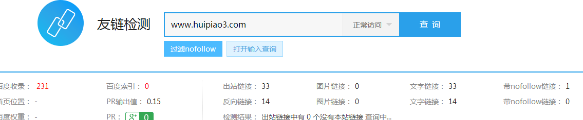 解决方案:给到我们域名的时候打开网址我们习惯性的xian去打开根域名,结果发现了他的根域名huipiao3.com未跳转到www.huipiao3.com,然后我们在打开www.huipiao3.com这个二几域名发现还是不跳转根域名,所以断定未做301的域名跳转。301Z定向有利于网站首选域的确定,对于同一资源页面多条路径的301Z定向有助于URL权重的集zhong,所以我们让客户提供给我们域名的权限我们进行了域名的解析让其跳转。